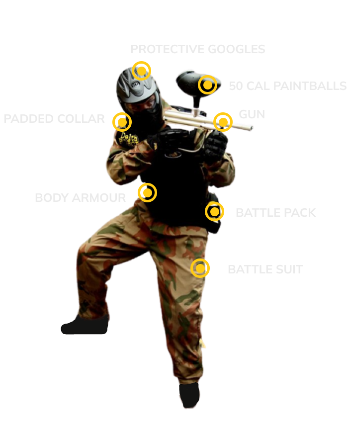 We want to make sure you look great, can move freely and shoot at will and stay safe throughout the paintballing day. Suit up in our combat uniform complete with full protection. Arm yourself with the latest replica M16 paintball gun. You’re good to go.